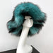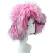 Purple fur hat on a mannequin head against a light gray background
