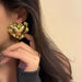 Designed to make an entrance, this sculptural statement ring features a richly faceted emerald-green stone framed by dramatic petal-shaped shoulders. Pavé crystal accents add depth and dimension, while a warm gold-tone finish enhances the vintage-inspired silhouette. The elevated center setting creates striking height, giving...